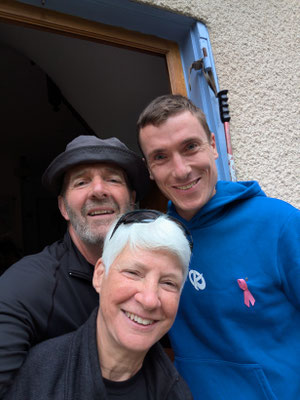 - des rencontres atypiques souvent provoquées par des hébergeurs en amont qui conseillent à leurs hébergés de venir au Champ d'étoiles (Nicole, Corinne et surtout mon ami Serge de Lauzerte, Agnès x 2 et Patrick de Moissac). Je pense ainsi à mes amis nordistes (sacré troupe), au jeune couple Laura et Grégoire avec leur petit Roméo de 8 mois, à Patrick motivé comme jamais, à Luka et son poulain Denver, aux frères et sœurs de Provence, à Ena venue conter devant ma cheminée sans feu ce jeudi 4 mai au soir...